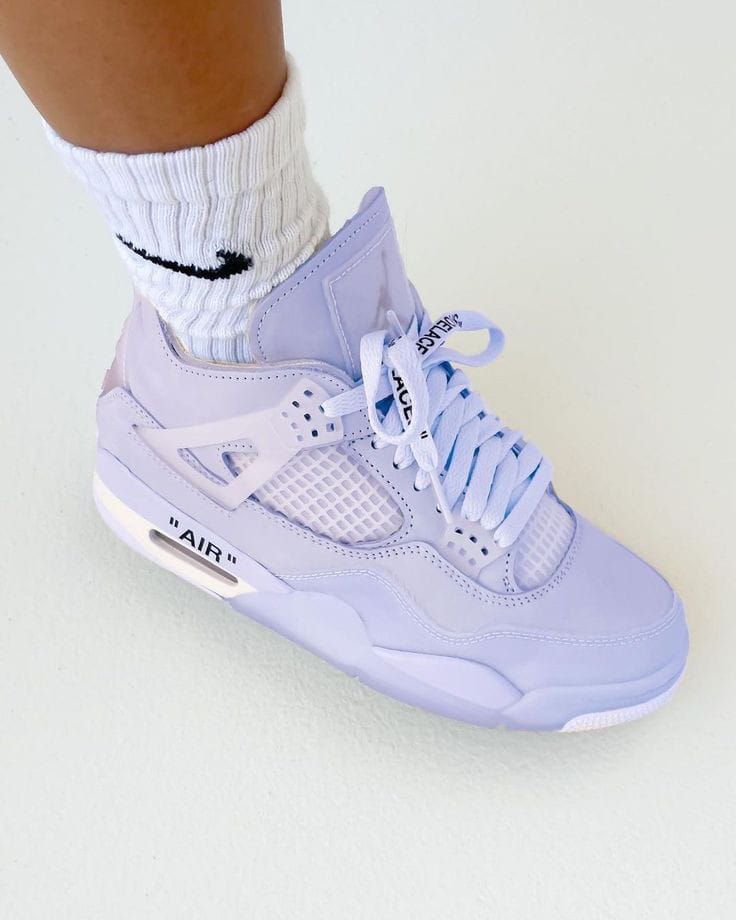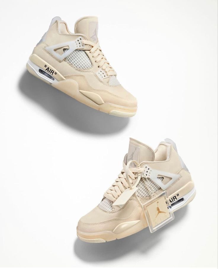 The tongue’s Jumpman and the outsole’s Swoosh provide contrast to the sail colored sneaker
