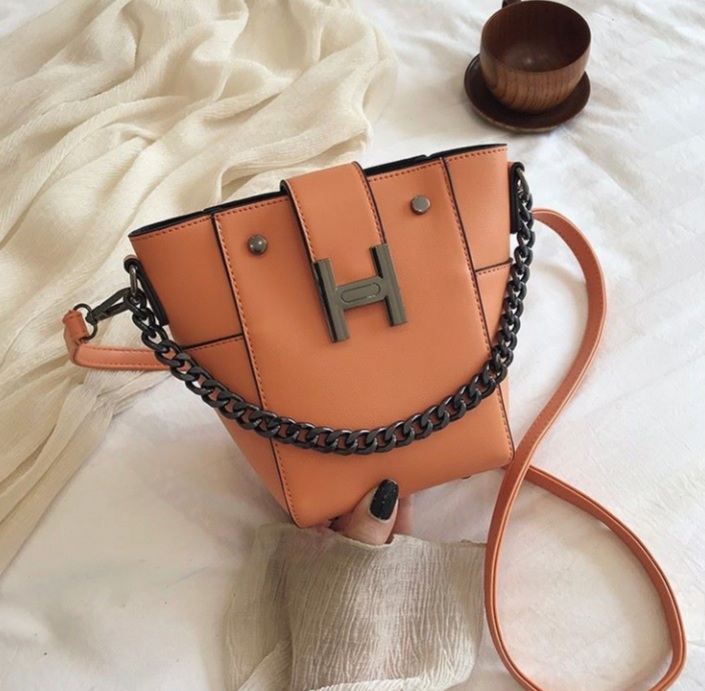 Ladies hand bag with chains and belt