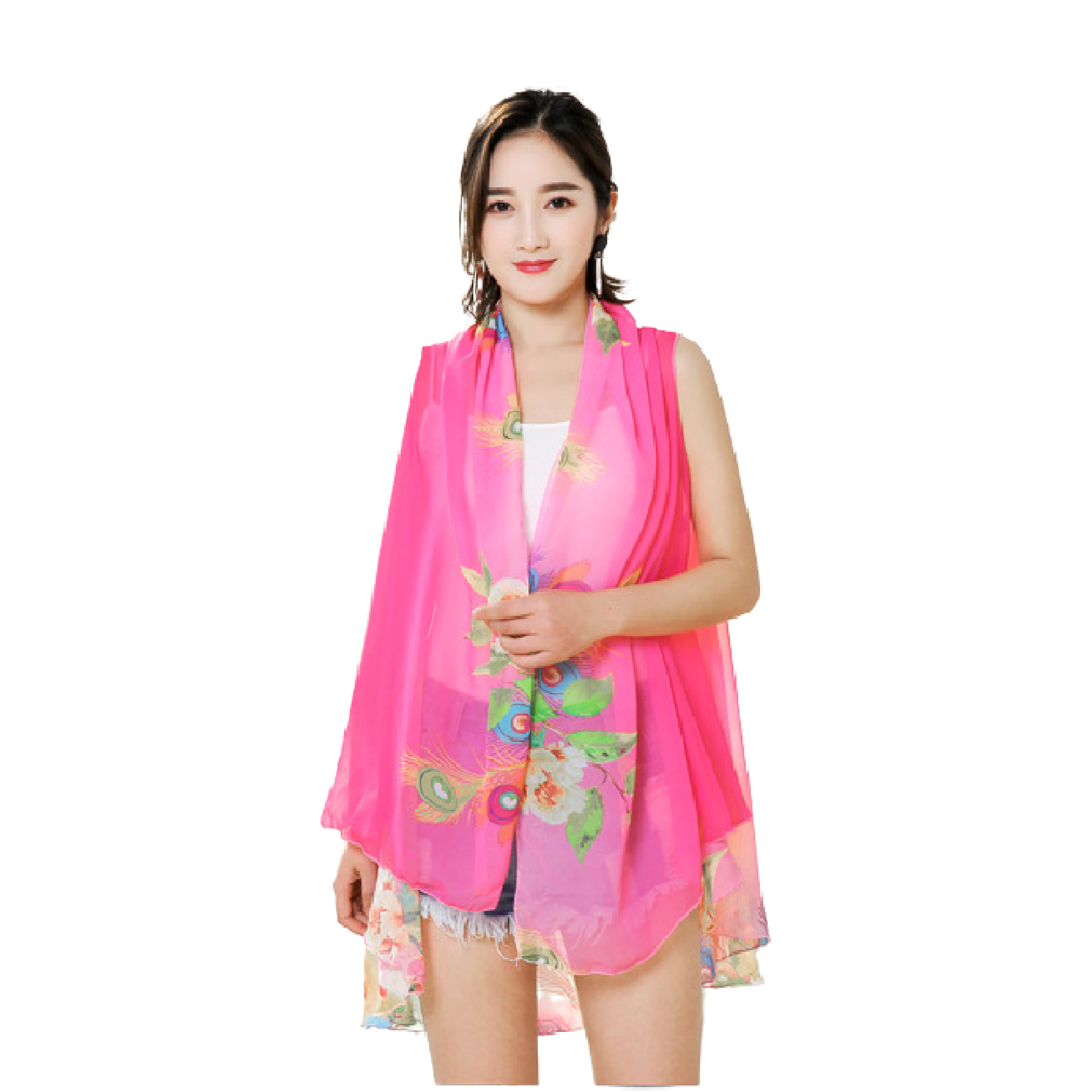 Versatile Sleeveless Chiffon Shirt - Shawl - Scarf - Pink 2A